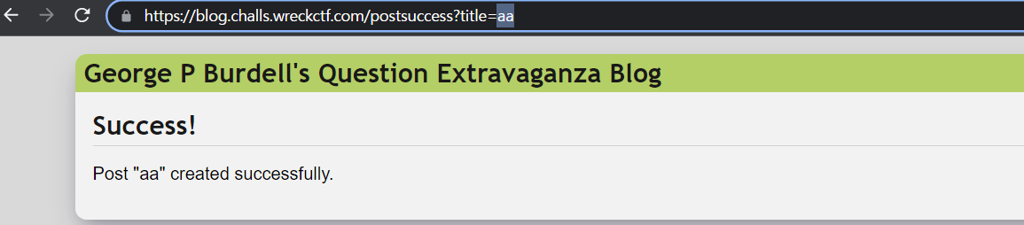 If I successfully upload a post, I can enter into "/postsuccess" endpoint. But there is no protection regard to parameter "title".
