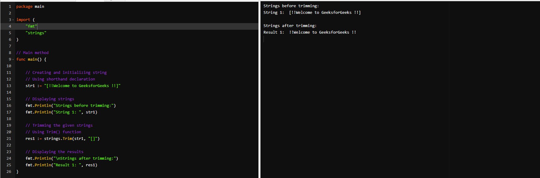 And another tiny point ! When you use "Trim" function, there is a big difference between Go and other language.