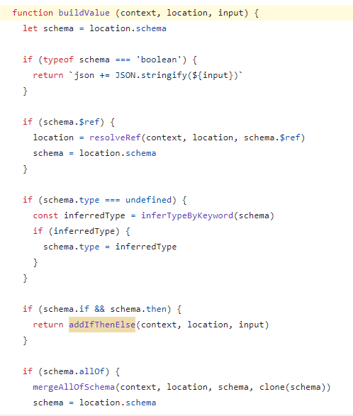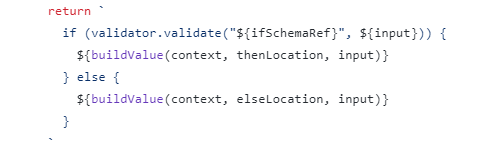 It checks property of "if" and "then". And it also checks ${ifSchemaRef} and input when return its value. Check ifSchemaRef.